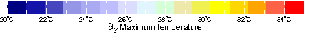 ∂Y Maximum temperature from WORLDCLIM: Current conditions (interpolations of observed data, representative of 1950-2000). Resolution: 30 arc-seconds (~1 km).