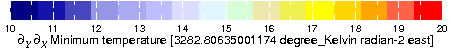 tmin partial_X partial_X Y X Minimum temperature from WORLDCLIM: Current conditions (interpolations of observed data, representative of 1950-2000). Resolution: 30 arc-seconds (~1 km).