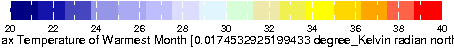 URUGUAY bio5 bio5 int_dY Max Temperature of Warmest Month from WORLDCLIM: Current conditions (interpolations of observed data, representative of 1950-2000). Resolution: 30 arc-seconds (~1 km).