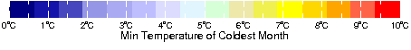 URUGUAY bio6 Min Temperature of Coldest Month from WORLDCLIM: Current conditions (interpolations of observed data, representative of 1950-2000). Resolution: 30 arc-seconds (~1 km).