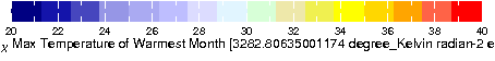 ∂Y ∂X Max Temperature of Warmest Month from WORLDCLIM: Current conditions (interpolations of observed data, representative of 1950-2000). Resolution: 30 arc-seconds (~1 km).