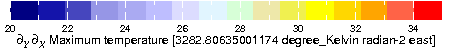tmax partial_X partial_X partial_Y Y X Maximum temperature from WORLDCLIM: Current conditions (interpolations of observed data, representative of 1950-2000). Resolution: 30 arc-seconds (~1 km).
