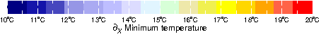 ∂X Minimum temperature from WORLDCLIM: Current conditions (interpolations of observed data, representative of 1950-2000). Resolution: 30 arc-seconds (~1 km).