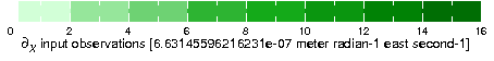 Convert units from 6.63145596216231e-07 meter radian-1 east second-1 to