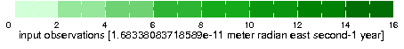 - 1.68338083718589×10-11 meter radian east second-1 year