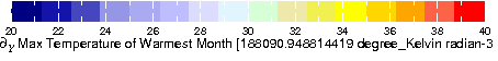 ∂Y ∂X ∂Y Max Temperature of Warmest Month from WORLDCLIM: Current conditions (interpolations of observed data, representative of 1950-2000). Resolution: 30 arc-seconds (~1 km).