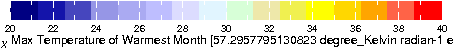 ∂Y ∂X Max Temperature of Warmest Month from WORLDCLIM: Current conditions (interpolations of observed data, representative of 1950-2000). Resolution: 30 arc-seconds (~1 km).