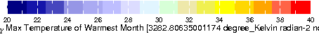 ∂X ∂Y Max Temperature of Warmest Month from WORLDCLIM: Current conditions (interpolations of observed data, representative of 1950-2000). Resolution: 30 arc-seconds (~1 km).
