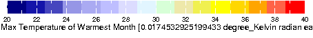 ∂Y Max Temperature of Warmest Month from WORLDCLIM: Current conditions (interpolations of observed data, representative of 1950-2000). Resolution: 30 arc-seconds (~1 km).