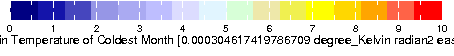 bio6 bio6 int_dY Min Temperature of Coldest Month from WORLDCLIM: Current conditions (interpolations of observed data, representative of 1950-2000). Resolution: 30 arc-seconds (~1 km).