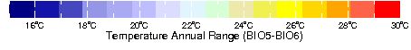 bio7 bio7 bio7 Temperature Annual Range (BIO5-BIO6) from WORLDCLIM: Current conditions (interpolations of observed data, representative of 1950-2000). Resolution: 30 arc-seconds (~1 km).